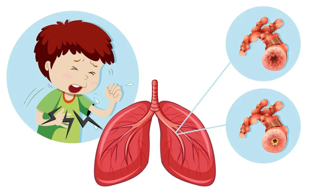 - برونشیت انسدادی (Obstruktive Bronchitis): معمولاً در سه سال اول زندگی رخ میدهد و توسط ویروسها ایجاد میشود. با تنگی نفس شدید و صدای سوت هنگام بازدم (Giemen) همراه است. مخاط تولیدشده باعث سختی در بازدم میشود و ساختار برونشها آسیب میبیند. نتیجه، انسداد برونشهای کوچک و پرشدن بیش از حد آلوئولها با هوا است که به آن برونشیت مزمن انسدادی گفته میشود. این وضعیت باعث کاهش گرفتن اکسیژن توسط خون و افزایش تدریجی تنگی نفس میشود.